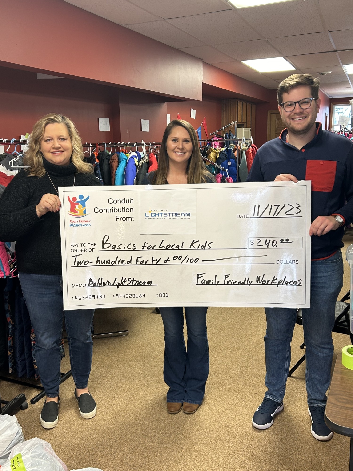 "At Baldwin LightStream, our team members are the cornerstone of our success. We are dedicated to fostering a workplace environment that not only nurtures professional growth but also prioritizes the well-being of our employees and their families," said JohAnna Diener with Baldwin LightStream. "We are equally thrilled to support Basics for Local Kids, and the wonderful work they do in our local community."