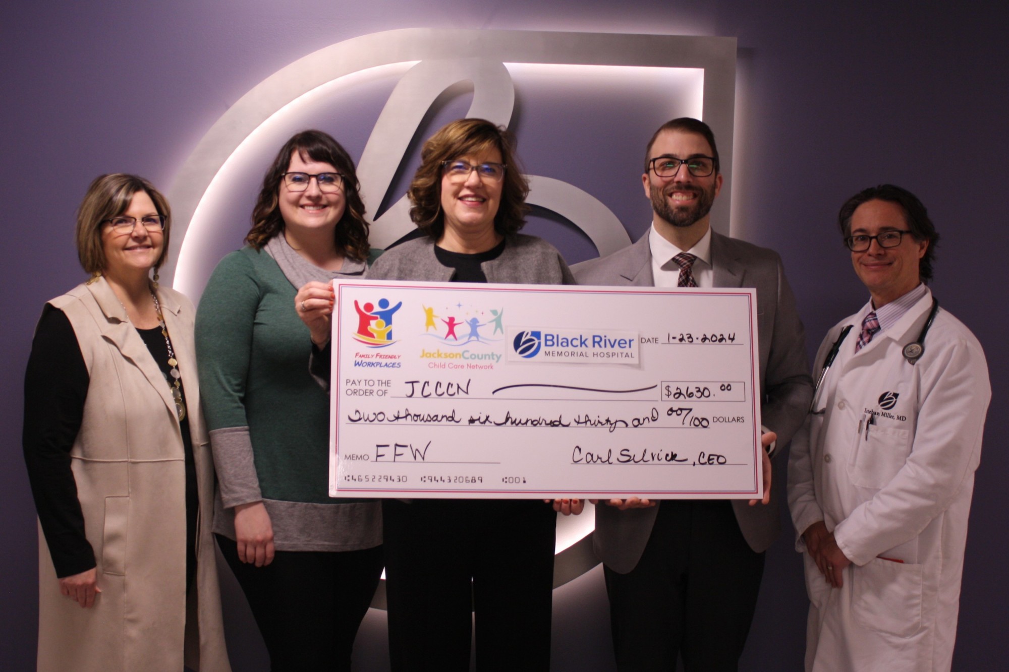 Members of the BRFH team presented the JCCCN with the hospital's conduit contribution on January 23rd in Black River Falls.