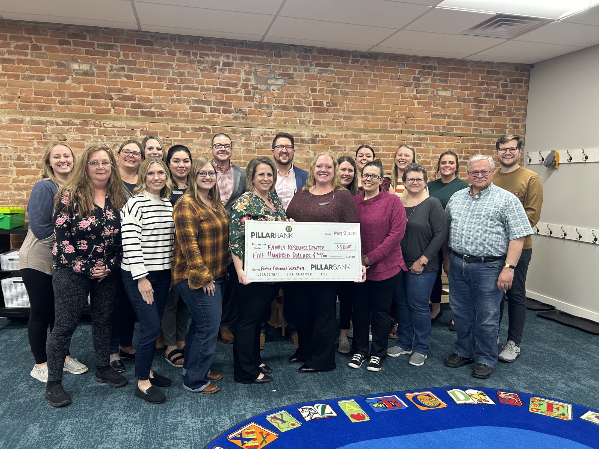 As part of the Family Friendly Workplace Certification Program, employers such as Pillar Bank make annual contributions to nonprofits supporting families. This marks the second consecutive contribution by Pillar Bank as a certified employer.